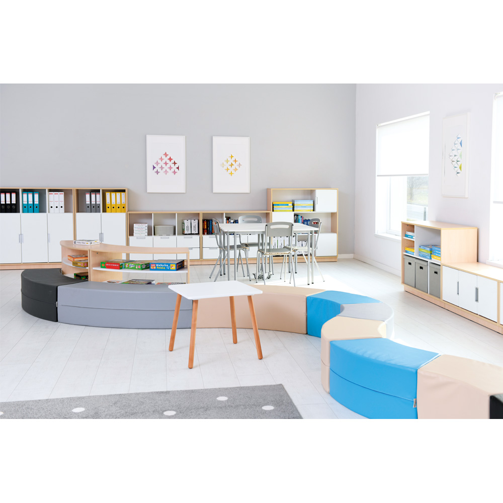 Die Bogenschränke eignen sich hervorragend als Raumteiler. Die Schrankform entspricht 1/8-Kreis.