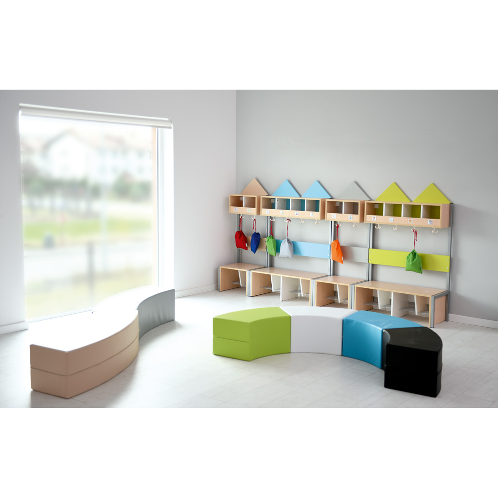 Die Bogenschränke eignen sich hervorragend als Raumteiler. Die Schrankform entspricht 1/8-Kreis.