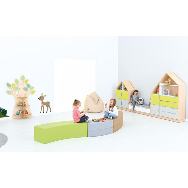 Die Bogenschränke eignen sich hervorragend als Raumteiler. Die Schrankform entspricht 1/8-Kreis.
