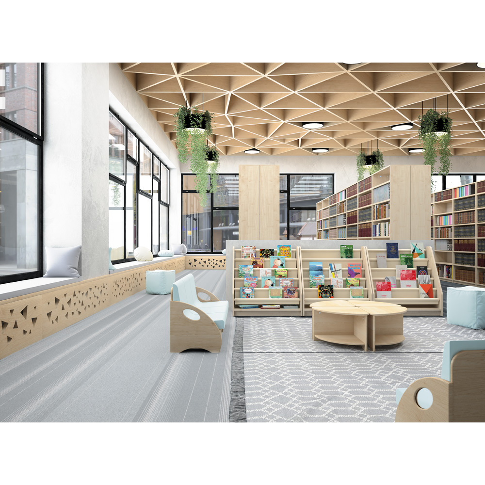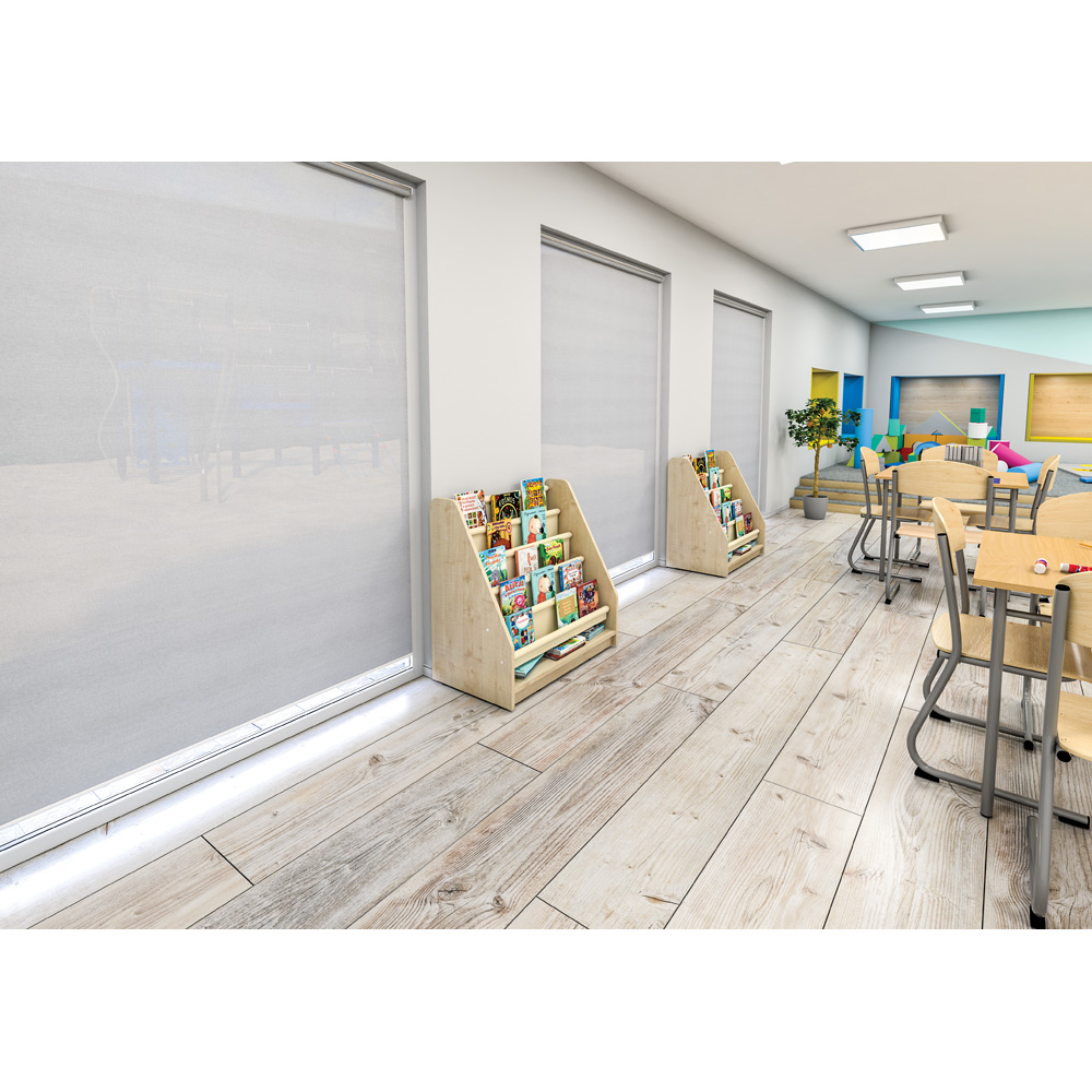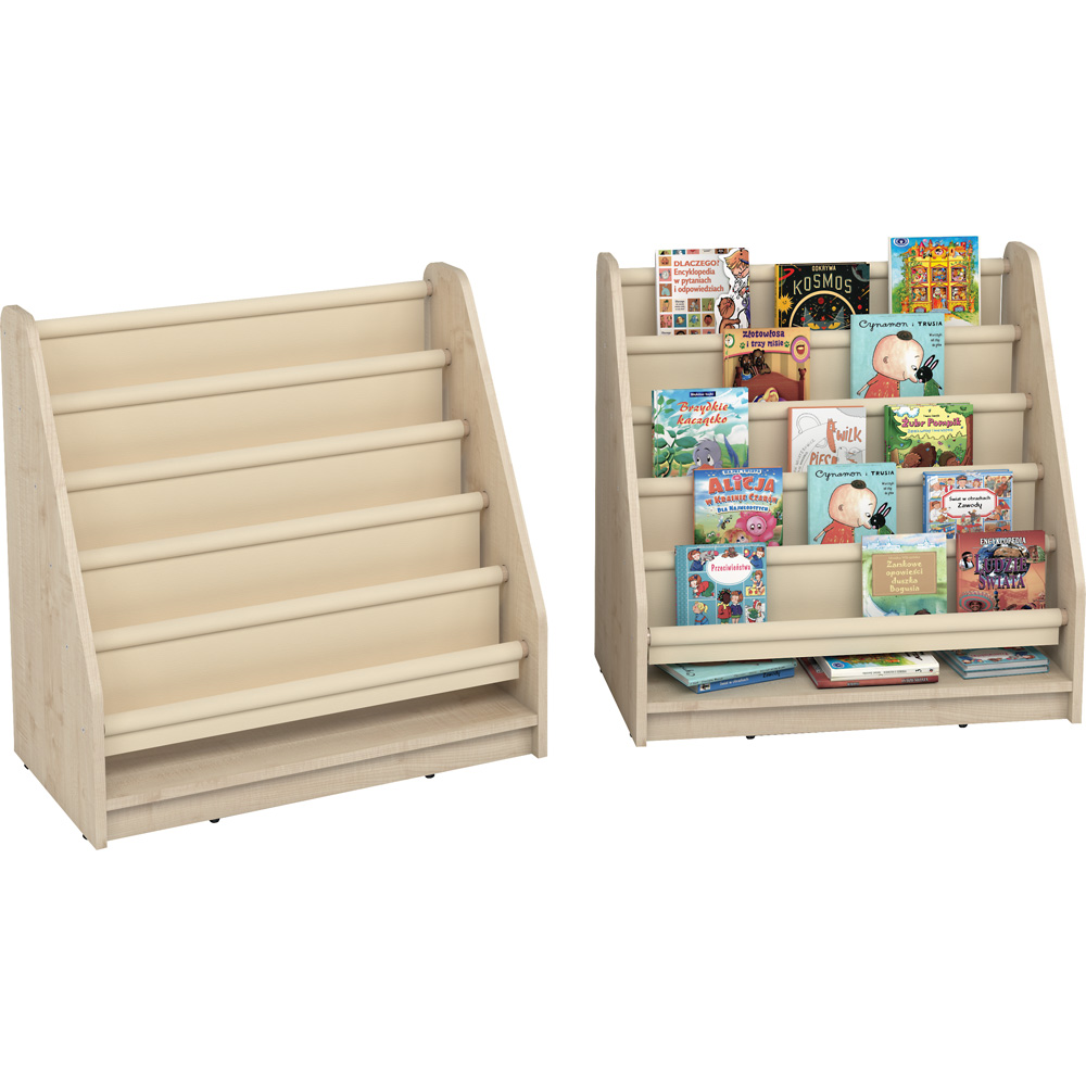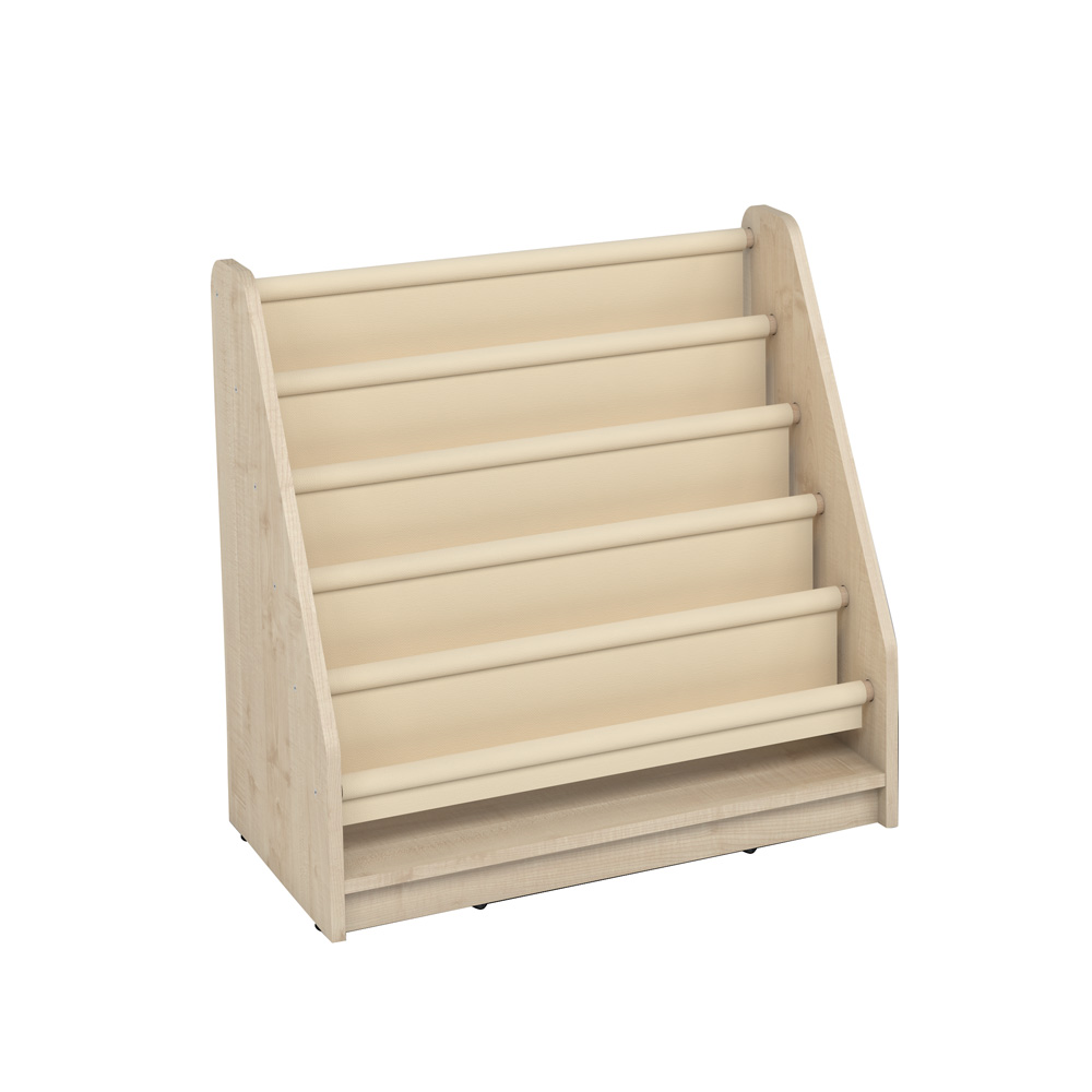 Das Regal ist mit Stoffböden ausgestattet. Diese sind mit Klettverschluss an den Stäben befestigt und können zum Waschen leicht entfernt werden. Der Sockel besteht aus laminierter Spanplatte in Ahorndekor (Stärke: 18 mm).