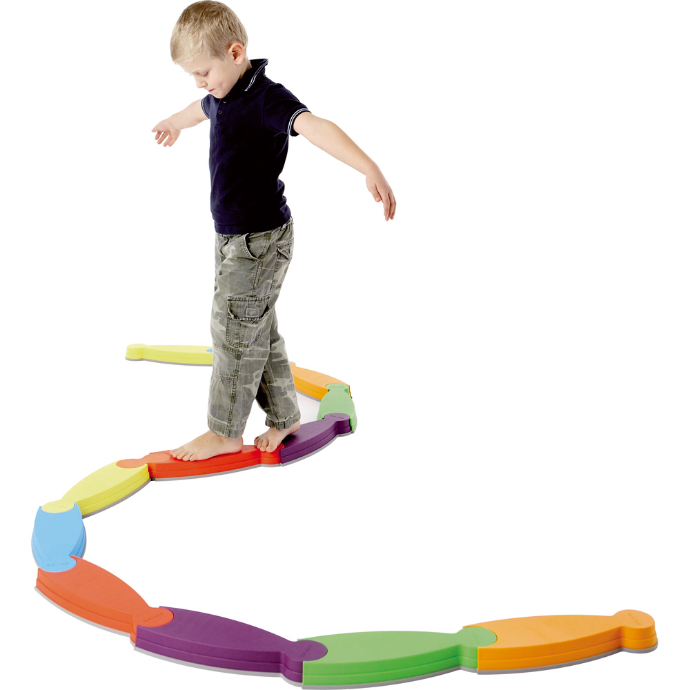 Die flexiblen Elemente lassen sich leicht miteinander verbinden, sodass immer neue Flussläufe entstehen – der Fantasie der Kinder sind keine Grenzen gesetzt. Durch die handliche Grösse können auch kleine Kinder ihren eigenen Fluss bauen und spielerisch ihr Gleichgewicht, ihre Koordination und Raumwahrnehmung trainieren.