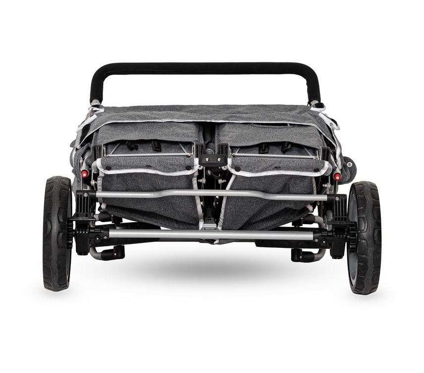 Übrigens: Wenn Sie den Kinderwagen nicht benötigen, ist er mit wenigen Handgriffen platzsparend zusammengeklappt.