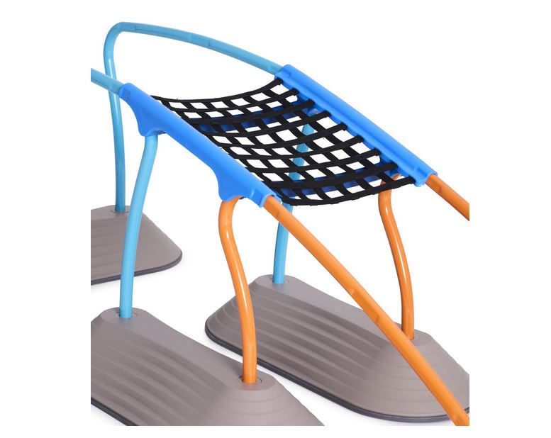 Eine flexible, netzartige Erweiterung, die Kinder zum Klettern auf allen Vieren animiert und den Mini-Hindernisparcours um eine dynamische Herausforderung bereichert. Fördert die Entwicklung der Koordination, stärkt die Muskulatur und die Körperbeherrschung durch aktives Spiel.