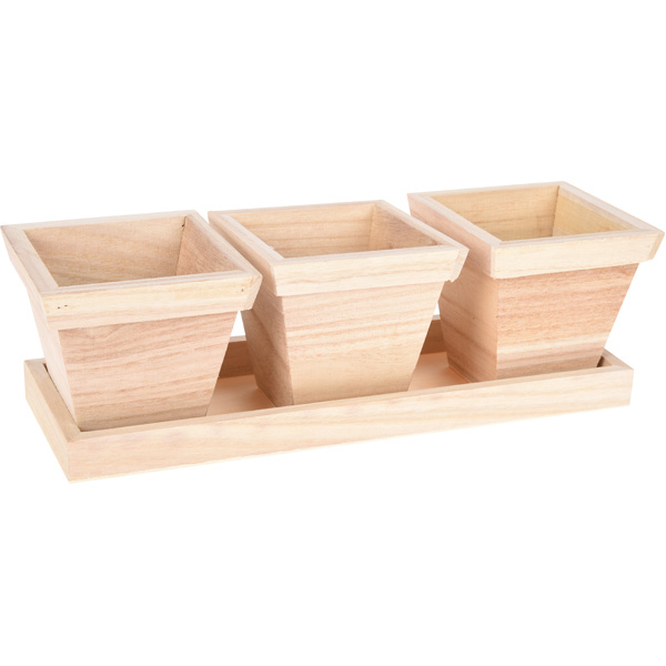 Deko-Holzblumentöpfe, 3 Stck.