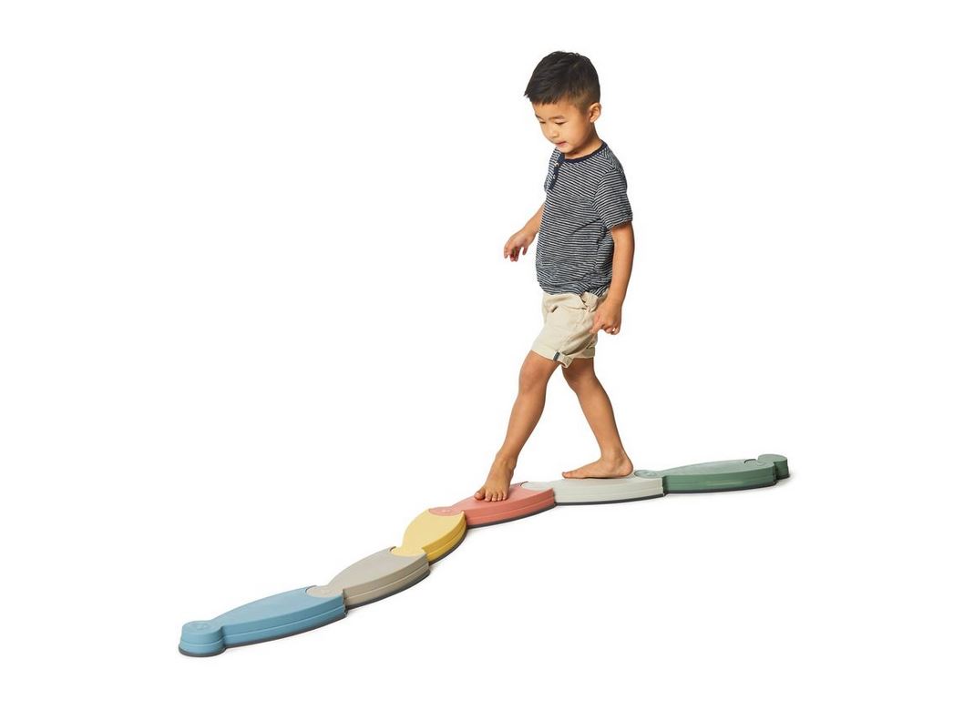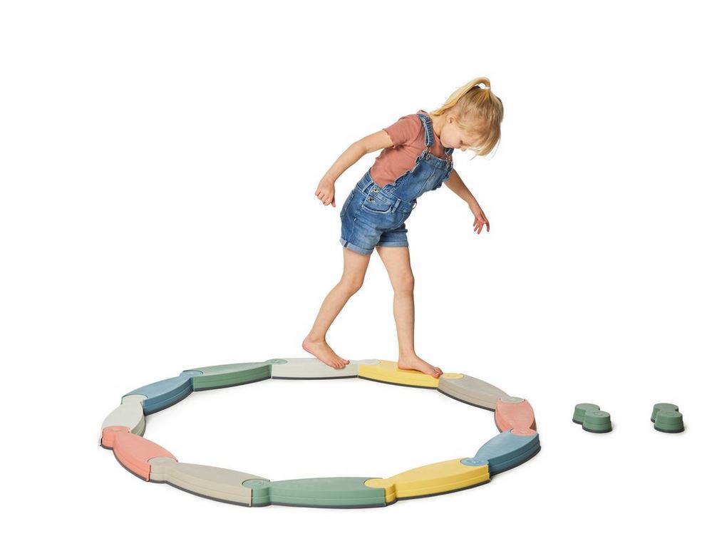 Die flexiblen Elemente lassen sich leicht miteinander verbinden, sodass immer neue Flussläufe entstehen – der Fantasie der Kinder sind keine Grenzen gesetzt. Durch die handliche Grösse können auch kleine Kinder ihren eigenen Fluss bauen und spielerisch ihr Gleichgewicht, ihre Koordination und Raumwahrnehmung trainieren.