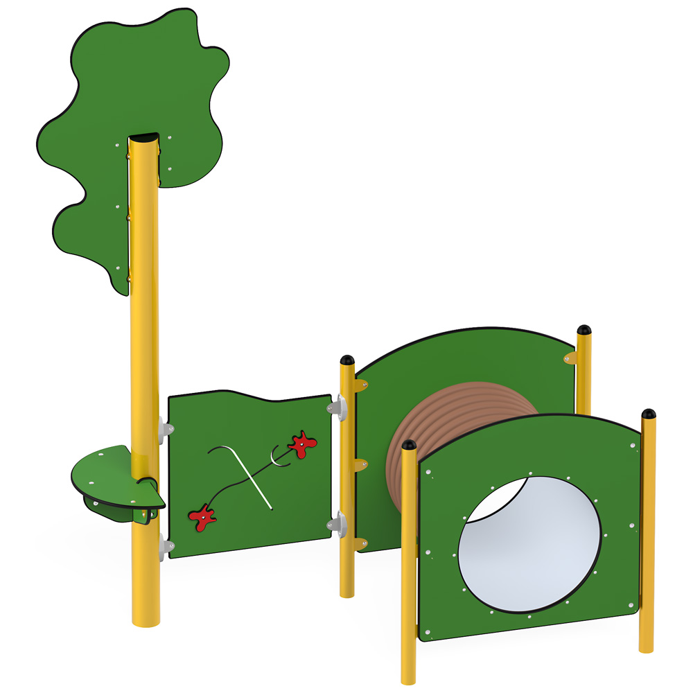 Was gibt es Schöneres, als unter einem Baum zu spielen? Durch Spielwand und Tunnel bieten sich viele Beschäftigungsmöglichkeiten.