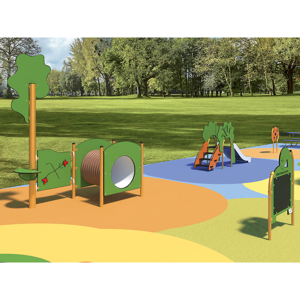 Ein Spielparadies für die Kleinsten - alle Geräte sind für Kinder ab einem Alter von 1 Jahr geeignet. In der Welt der Dinos erleben die Kleinen Abenteuer und meistern in sicherer Umgebung erste Herausforderungen beim Entdecken ihrer körperlichen Fähigkeiten. Alle Geräte entsprechen DIN EN 1176 und sind zertifiziert, erfüllen somit die Voraussetzungen für den öffentlichen Bereich. Wir gewähren 2 Jahre Garantie.