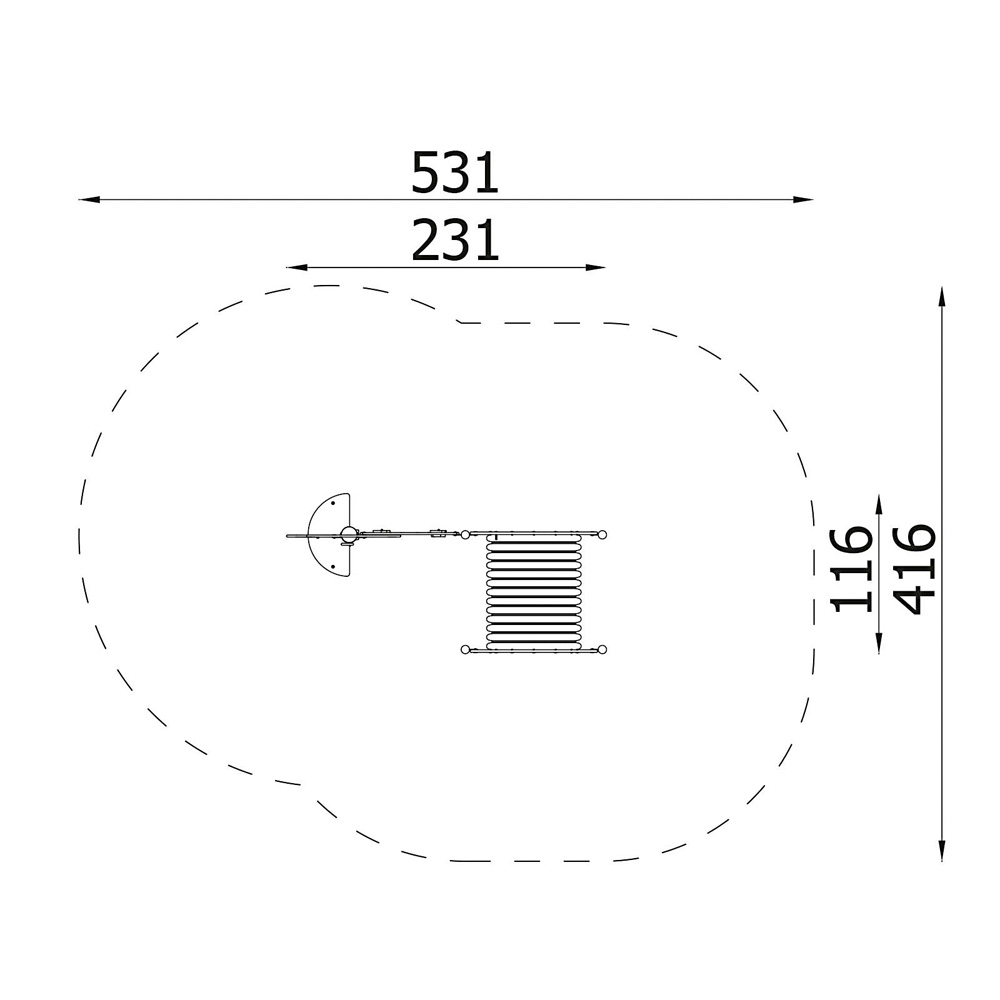 • Sicherheitsbereich: 531 x 416 cm (Fläche: 17,8 m²)
