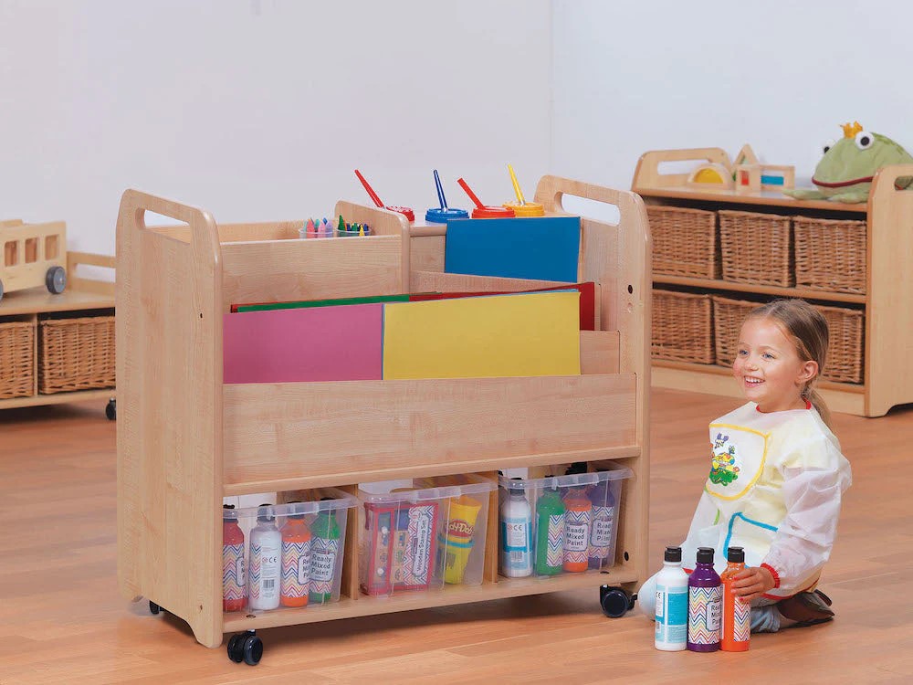 Schaffen Sie mit der Möbelkollektion Natura Elegant eine Umgebung, die Ausdruck und Fantasie fördert. Dieses doppelseitige kreative Bastelregal ist ideal zum Aufbewahren und Ordnen von Künstlerbedarf.