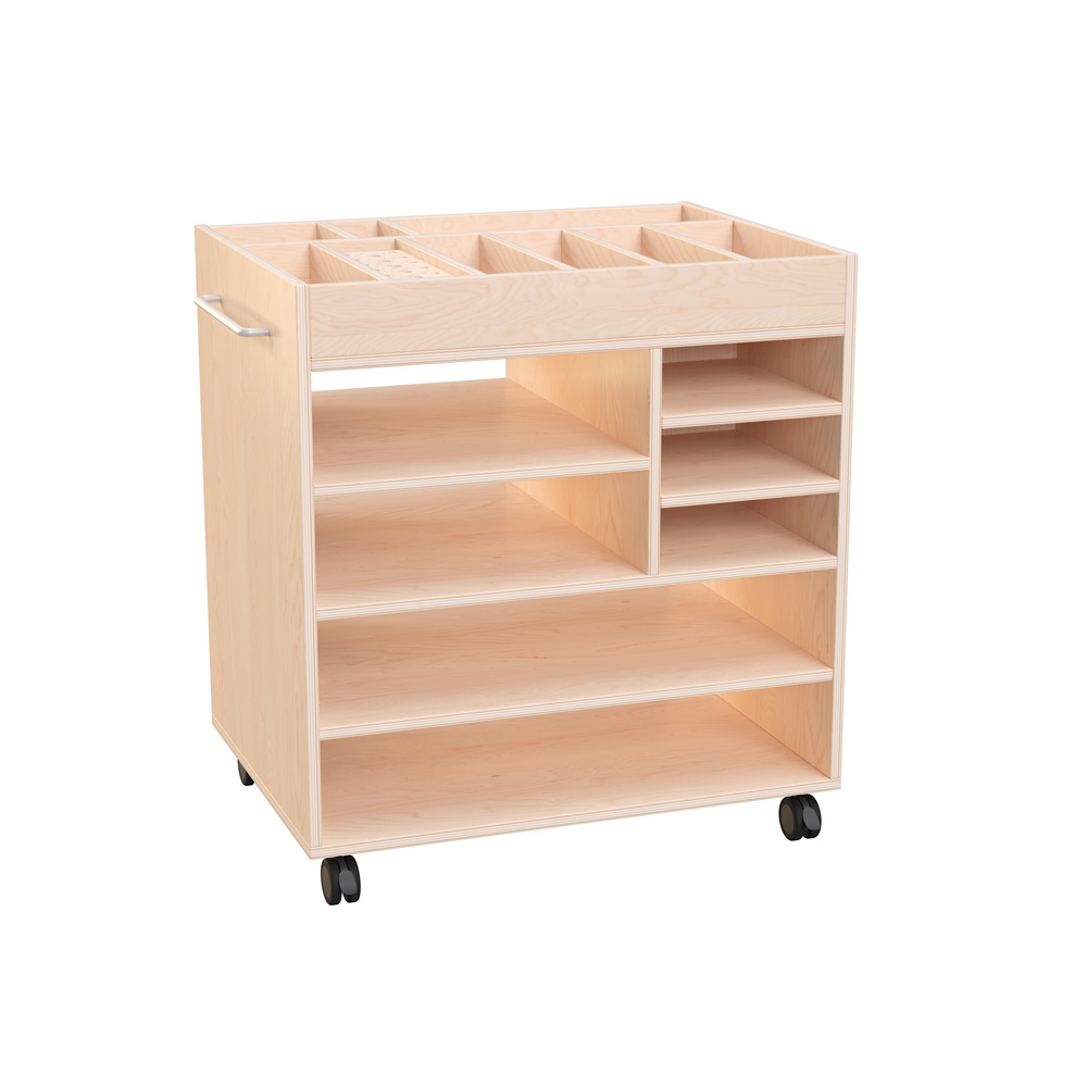 • Auf zwei Seiten befinden sich Griffe für einen leichteren Transport. So kommen Spiel-, Sport- oder Bastelmaterialien schnell dahin, wo sie gebraucht werden.