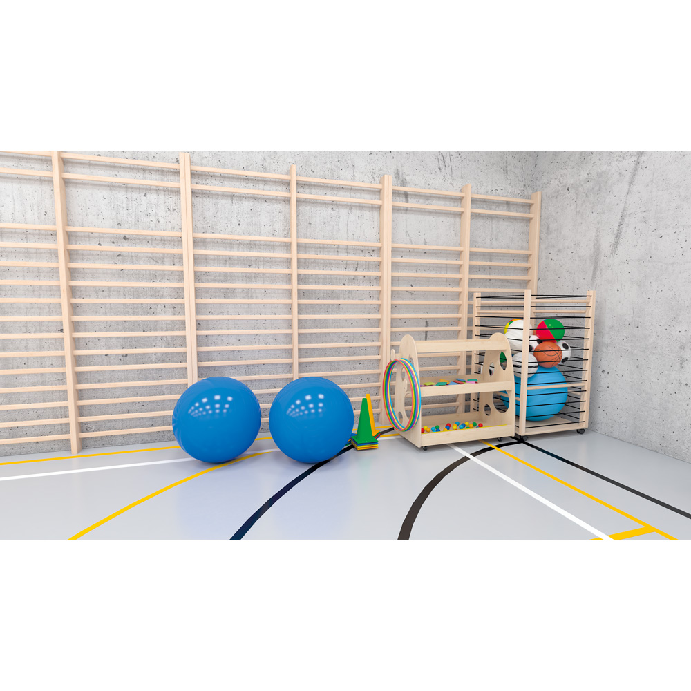 Egal ob Sportartikel, Bastelmaterial oder Spielzeug - dieses funktionelle Regal mit Rollen dient zur Aufbewahrung verschiedener Materialien und Gegenstände.