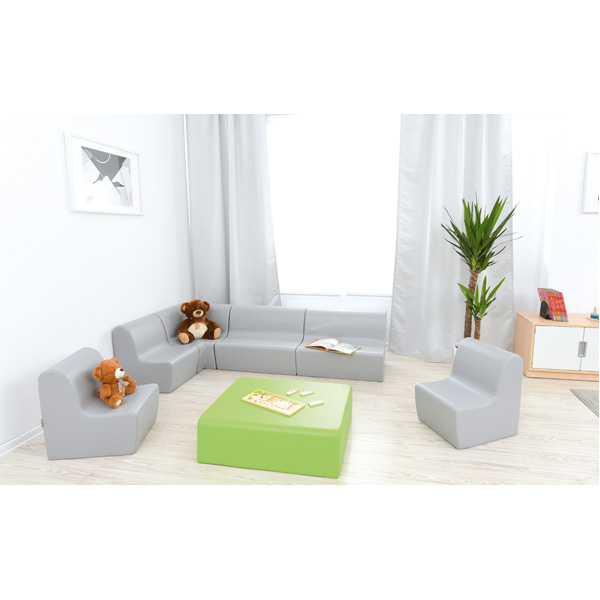 Wichtiger Bestandteil aller Spiel-, Erholungs- und Leseecken sind Sitzgelegenheiten; mit den Sofas und Sitzen aus der Kollektion Klassik lassen sich diese Ecken farbenfroh und kindgerecht gestalten. Alle Elemente sind ohne Armlehne, also platzsparend und gut kombinierbar. Ihre bequeme Form und die leuchtenden Farben zaubern Freude und Wärme in jeden Raum. Mit der Sitzhöhe 20 cm sind sie auch für Kleinkinder geeignet. Da sie so leicht sind, können sich die Kinder ihre Spielecke selbst möblieren und nach Lust und Laune umgestalten. Mal ist es ein Zug (ein Teil hinter dem anderen), mal eine gemütliche Sitzecke für den Kuchenklatsch mit den Puppen. Die Sitze sind aus festem Schaumstoff mit pflegeleichtem Bezug aus phthalatfreiem Kunstleder. Alle Sofaelemente werden in 3 Sitzhöhen, 20, 26 und 34 cm, und in 6 Farben angeboten.