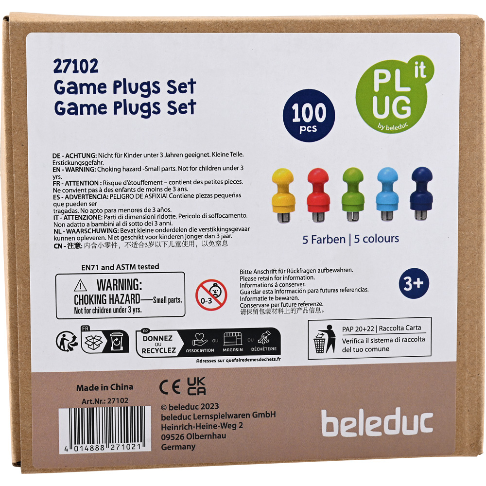 • 1 Holzwürfeldrehrad • 2 Farbräder • 32 Spiel-Plugs • 4 Raupen-Plugs