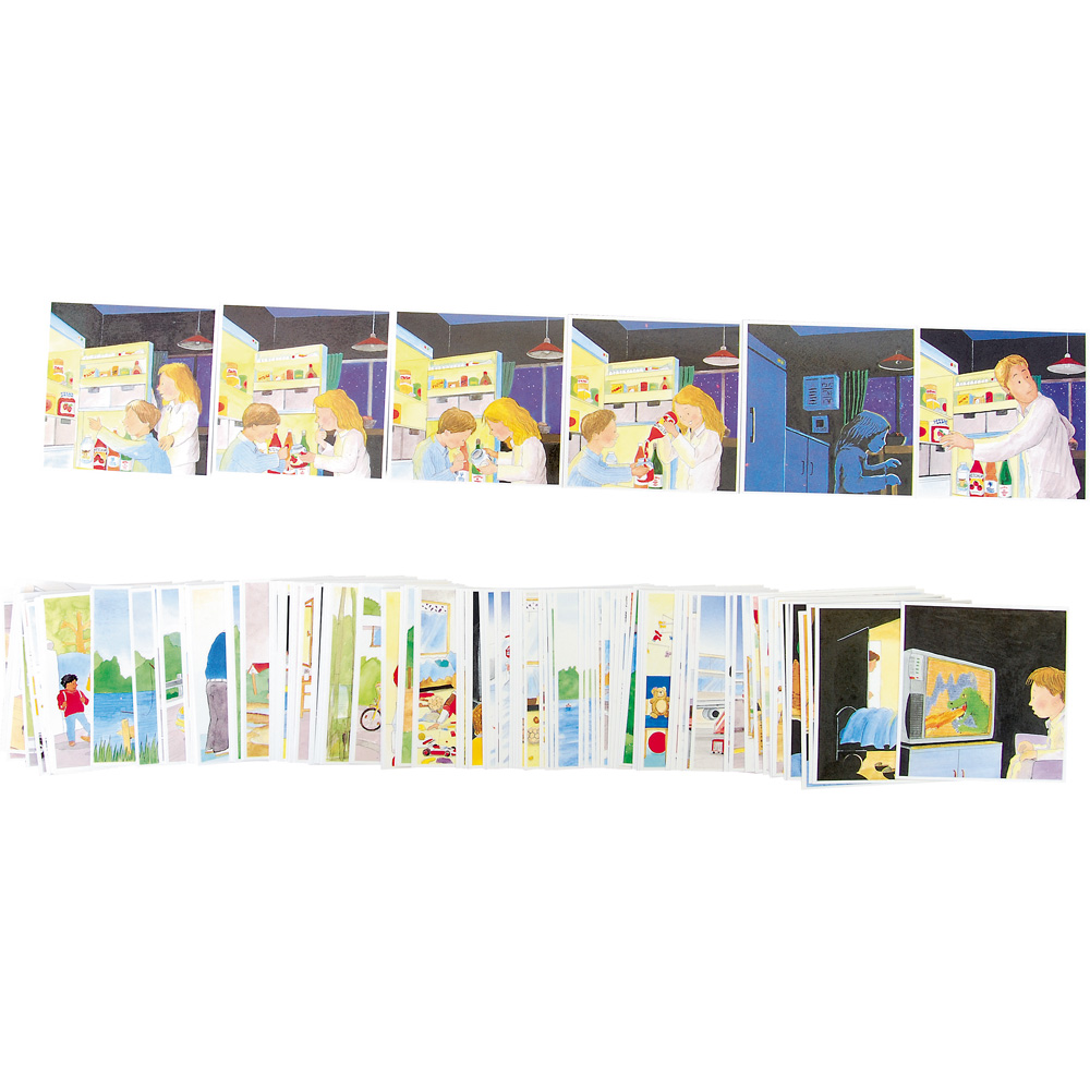 26 Alltagsgeschichten, dargestellt in Bildfolgen aus 4-7 Karten. Mal sind sie lustig, mal ernst, immer jedoch aus dem Leben von Kindern geschöpft, so dass ein jedes mitreden kann. Fördert sprachliche Fähigkeiten und logisches Denken und regt an, über das Verhalten in Alltagssituationen zu diskutieren.