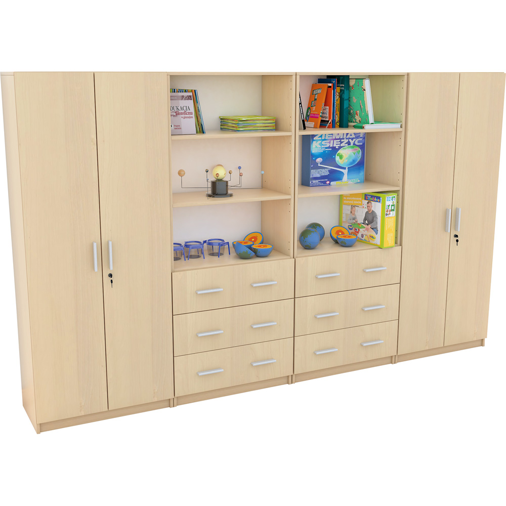 Kombi-Regal aus laminierter Spanplatte (Stärke 18 mm); mit Sockel.