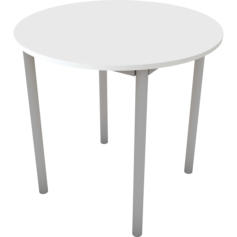 Tisch mit alufarbenem Metallgestell. Die Tischbeine sind höhenjustierbar (bis 25 mm) zum Ausgleich von leichten Bodenunebenheiten. Tischplatte aus laminierter Spanplatte (Stärke 25 mm) mit 2 mm starken ABS-Kanten, in verschiedenen Dekoren erhältlich.