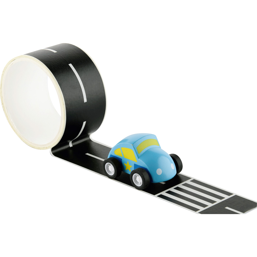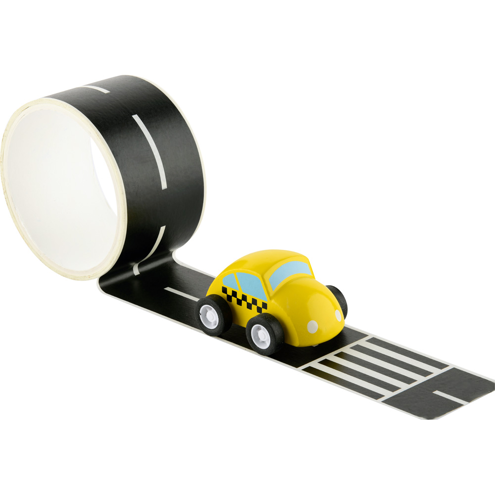 Kreativ sein und eine Strasse aufkleben, dann kann das Auto mit seinen Gummirädern über die Fahrbahn düsen.