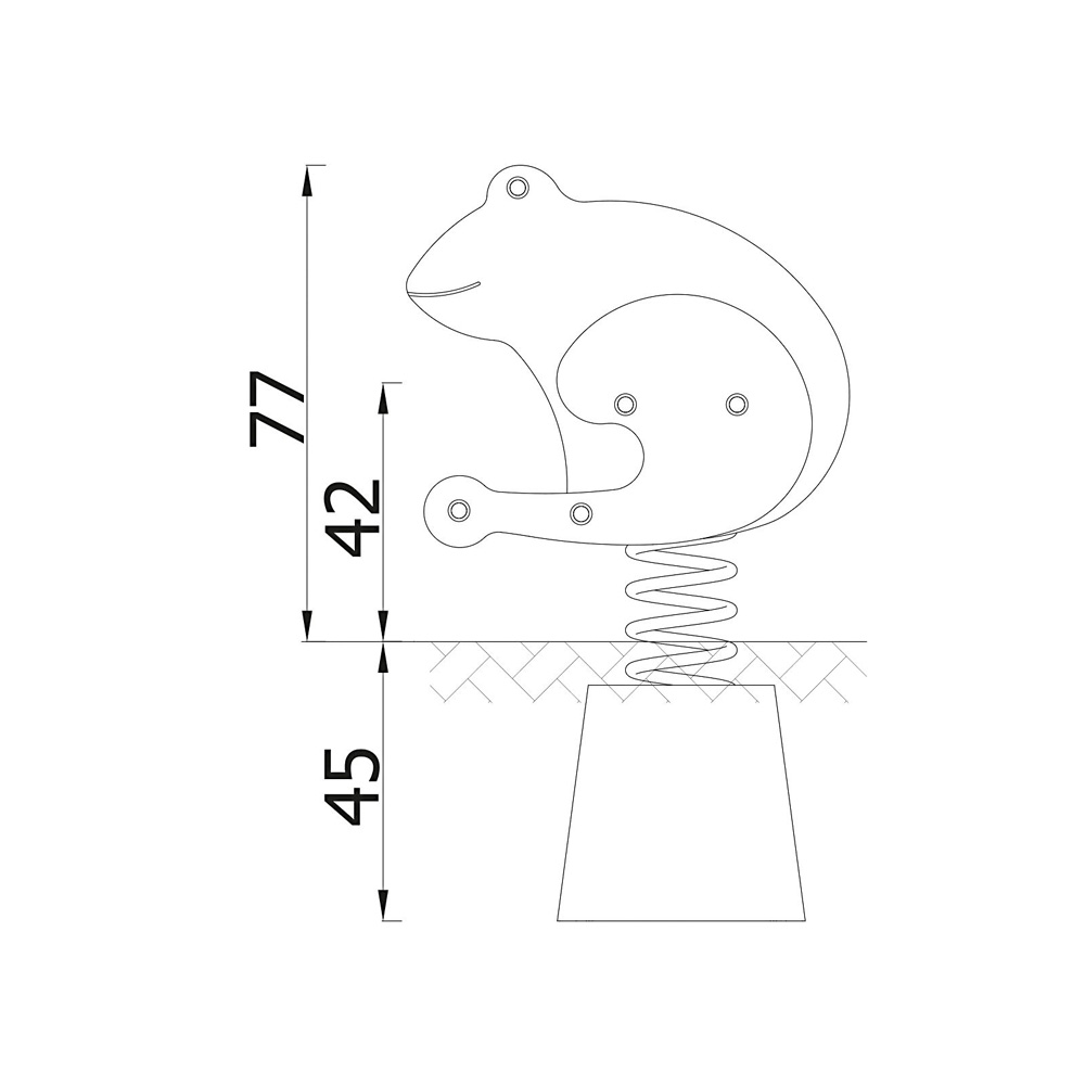 Unsere Federwippen werden wahlweise mit Metall- oder Beton-Bodenanker geliefert. Metall-Bodenanker müssen einbetoniert werden, bei Beton-Bodenankern ist dies nicht erforderlich.