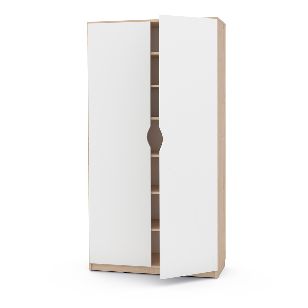 Die hochwertigen, leise schliessenden Scharniere ermöglichen ein Öffnen um 105°. Mit Aussparung, die als Griff dient und für zusätzliche Belüftung sorgt.