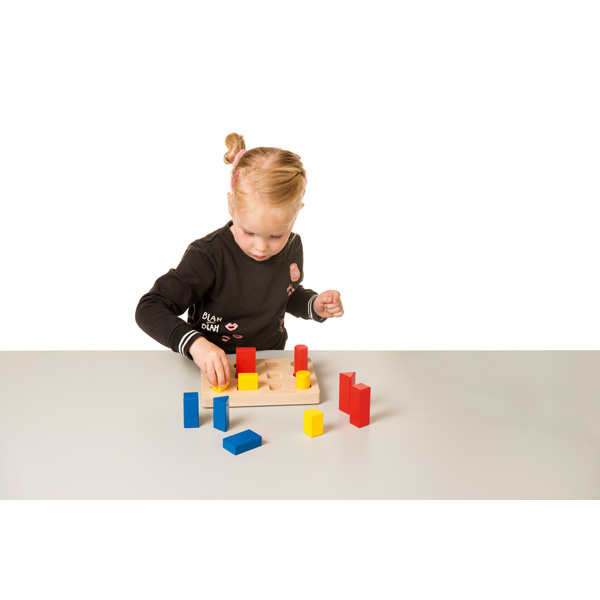 Das Spiel mit den Holzfiguren fördert das räumliche Denken und die Feinmotorik. Sie lassen sich prima nach Farbe, Grösse oder Form sortieren.