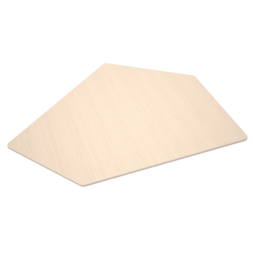 Solide und formschöne Echtholztischplatten aus farbigem HPL-beschichtetem Sperrholz (Stärke: 25 mm); Kanten und Ecken abgerundet. Die fünfeckige Tischform bietet viele interessante Einsatzmöglichkeiten. Tischbeine in 5er-Sets (massiv, rund, Ø 55 mm) in diversen Höhen (mögliche Tischhöhen: 40, 46, 52, 58, 64, 70 und 76 cm oder verstellbar: 40–58 oder 58–64 cm) werden separat angeboten. Sie können zwischen zwei Sets wählen: ein Set besteht aus 5 herkömmlichen