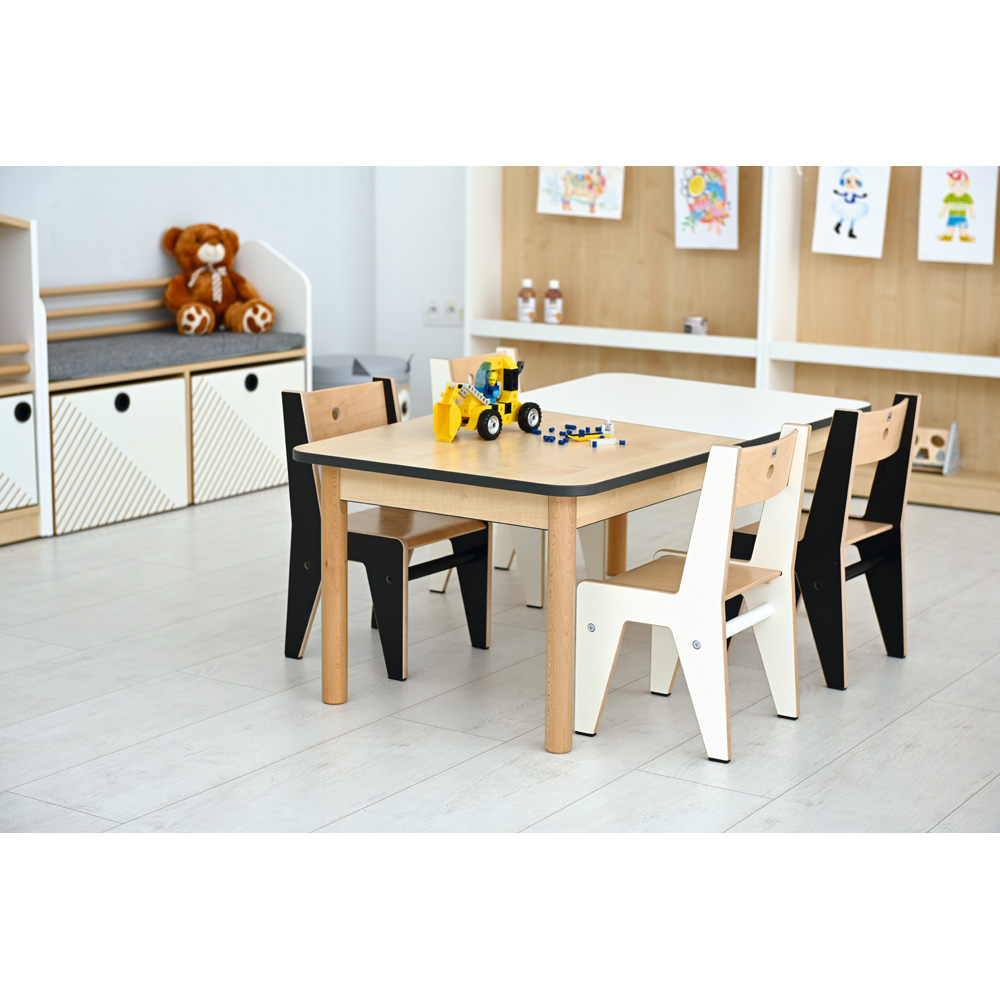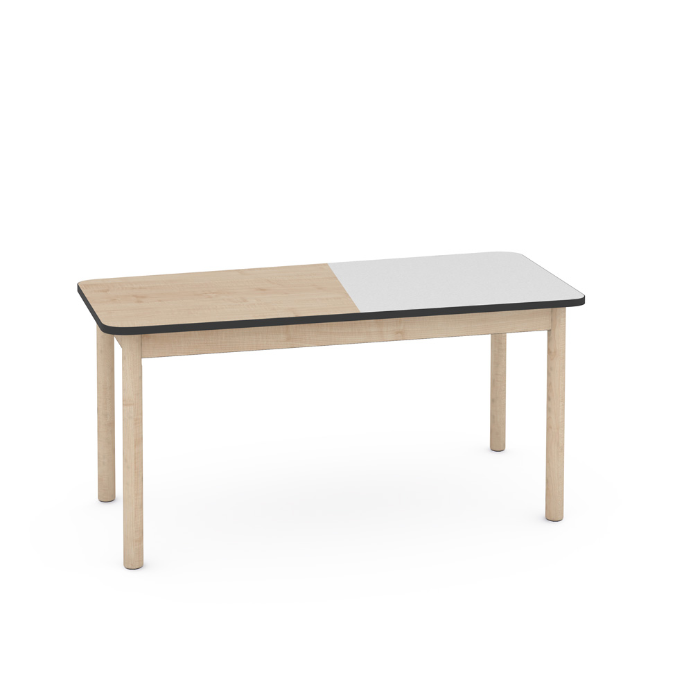 Tischplatten aus laminierter Spanplatte (18 mm) mit ABS-Kanten (anthrazit). Je nach Bedarf stehen unterschiedlich hohe Tischbeine zur Verfügung (rund, mit fester Höhe) - separat zu bestellen. Die Form der Tischplatte ist unregelmässig und bietet verschiedene Stellmöglichkeiten. Dies wirkt sich positiv auf die Gruppendynamik und das gemeinsame Arbeiten aus. Die Produktion erfolgt gemäss DIN-EN 1729.