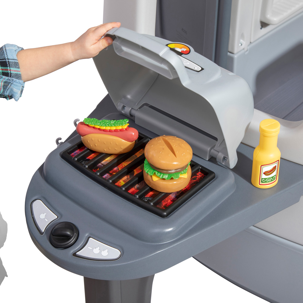 Die vielen realistischen Details in dem geräumigen Food Truck ermöglichen Rollenspiele im Innen- und Aussenbereich. Die interaktive Einbauküche ist ausgestattet mit Herd, Grill, Spüle und einer Klingel. Darüber hinaus sind zahlreiche Zubehörteile wie Lebensmittel, Besteck und weitere Utensilien enthalten.