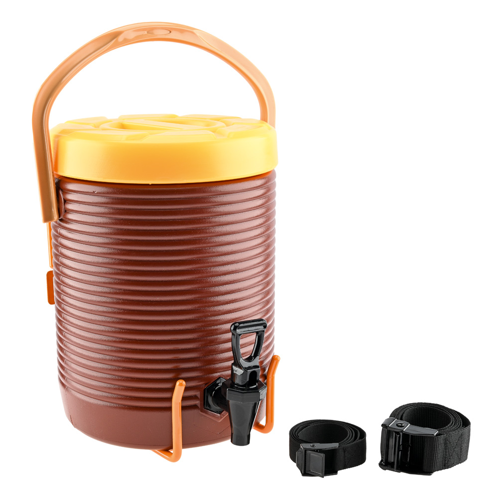 Mit diesem Getränkespender entfällt das Tragen einzelner Flaschen und mit 9 Litern Fassungsvermögen wird der Durst einer ganzen Gruppe gelöscht. Er wird mit einem Montageset aus Metall und 2 Spanngurten geliefert, sodass der Spender auch an einem Baum oder Zaun befestigt werden kann. Er hält Flüssigkeiten bis zu 12 Stunden lang warm/kalt und ist leicht zu reinigen. Hitzebeständig bis zu 100°C. Eignet sich perfekt als Ergänzung zum Multi-Flex-Trolley (532188, separat erhältlich).
