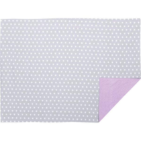 • Design: eine Seite grau mit Sternen; die andere Seite lila mit Punkten