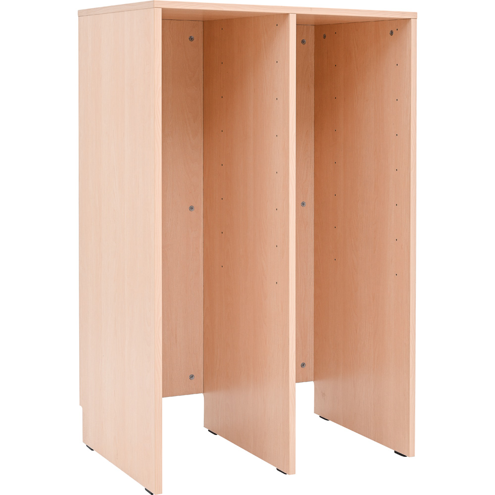 • aus laminierter Spanplatte (Stärke: 18 mm), wahlweise in Ahorn-Optik oder weiss