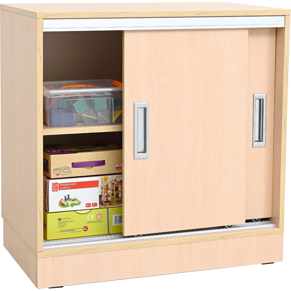 Platzsparende Schiebetürschränke mit viel Stauraum für Kita, Schule und Büro.