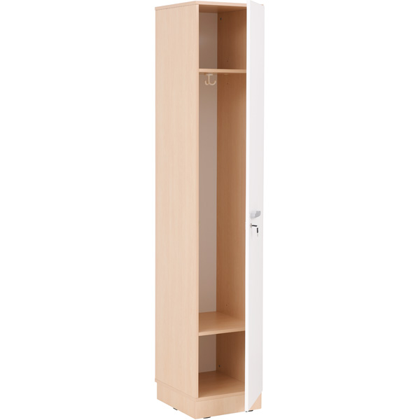 Spindschränke in 2 Modellen - als Einfach- oder Doppelspindschrank - sowie in 2 Höhen und 2 Tiefen erhältlich. Korpusfarbe stets Ahorn, Türen wahlweise in Ahorn-Optik oder weiss.