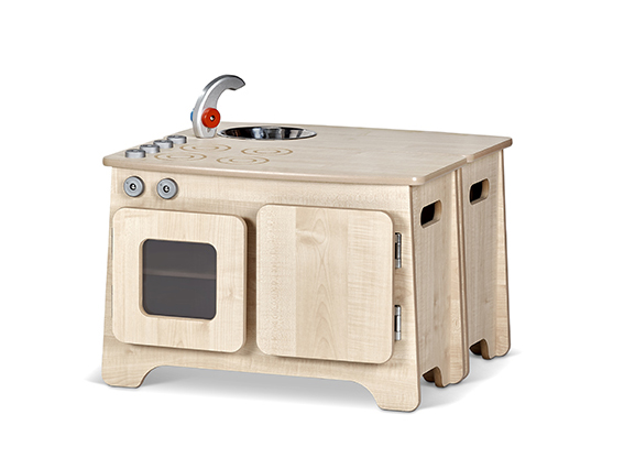 Mit liebevollen Details wie drehbaren Bedienknöpfen, Wasserhahn und Spüle, praktischen Ablagefächern sowie fingerklemmsicheren Scharnieren lädt das Set zum sicheren, kreativen Spielen ein.