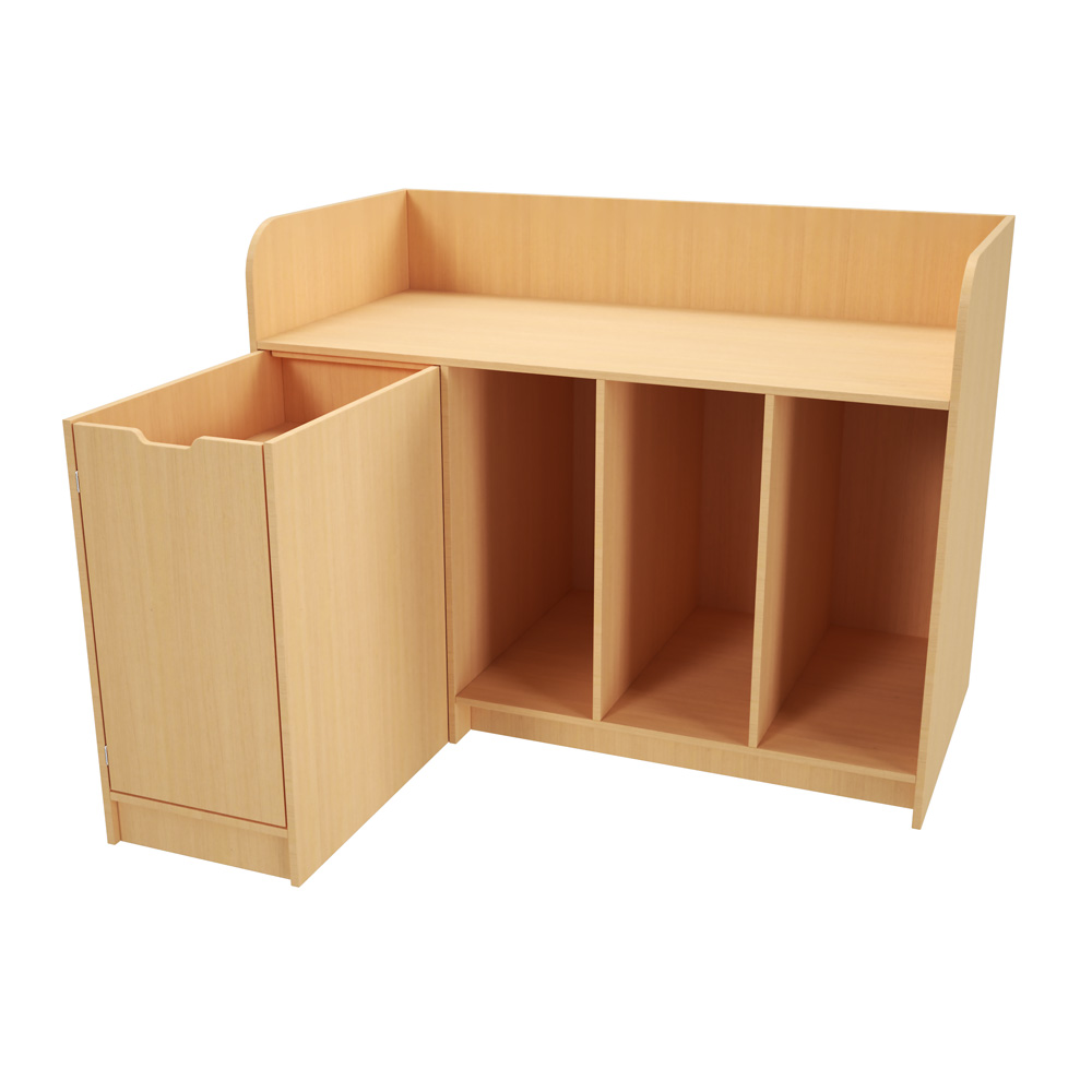 Preview: Grosse Wickelkommode B 150, Birke, Treppe mit Tür links