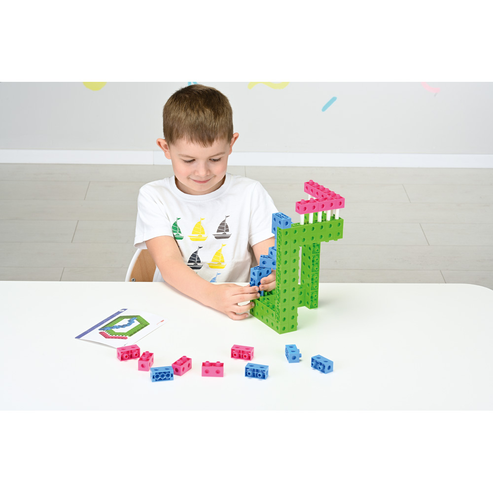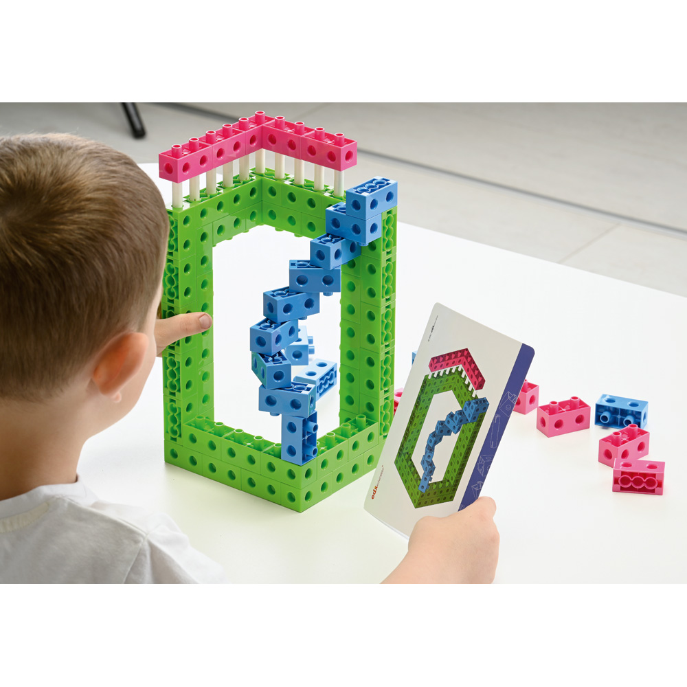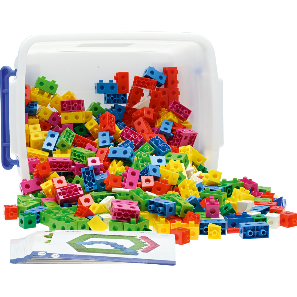 Die Bausteine aus Kunststoff eignen sich nicht nur zum Spielen, auch mathematische Kenntnisse wie Sortieren und Zuordnen oder kleine Rechenaufgaben werden mit ihnen zum Kinderspiel. Kompatibel mit den Bausteinen 500002 und 500218.