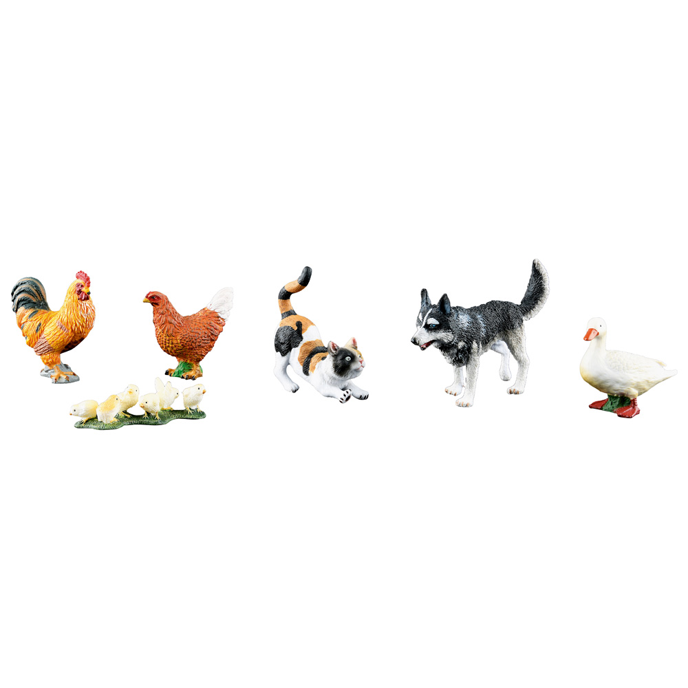Hahn und Henne, Hund und Katze, Ente und Küken leben friedlich auf dem Hof zusammen. Entwickelt die Vorstellungskraft, den Wortschatz und das Verständnis für die Welt.