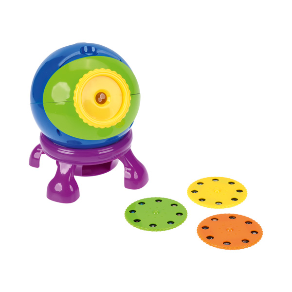 Das Sonnensystem in den Händen halten - mit diesem Projektor kein Problem. Der kleine, handliche Projektor wirft Bilder von Planeten, Sternen und anderen Himmelskörpern auf fast jede beliebige Oberfläche und begeistert so bereits die Kleinsten für das Thema Astronomie. Auf den 3 Scheiben finden sich insgesamt 24 Bilder, u.a. Planeten, Sonne, Mond, Raumfähre uvm. Ausgestattet mit praktischem Tragegriff und solidem Standfuss, ist der Projektor schnell einsatzbereit, benötigt werden drei Batterien AAA (nicht enthalten). Auch als Schlummerlicht zu verwenden, da das Gerät nach 15 Minuten automatisch abschaltet.