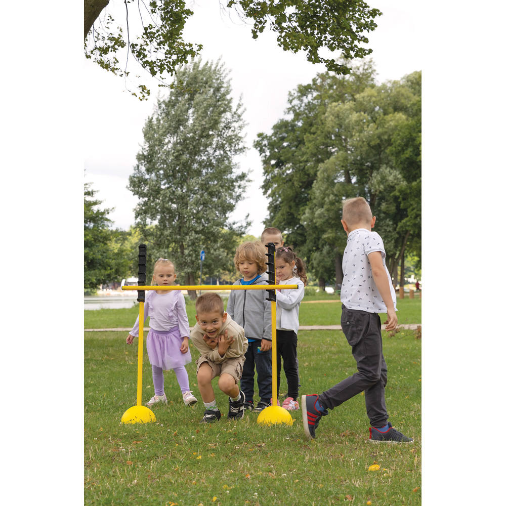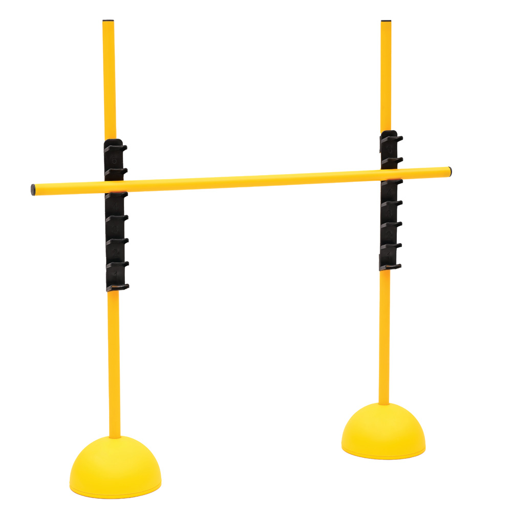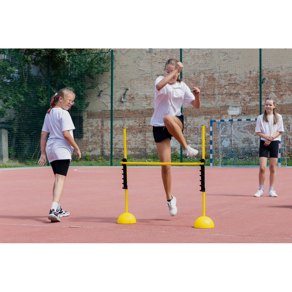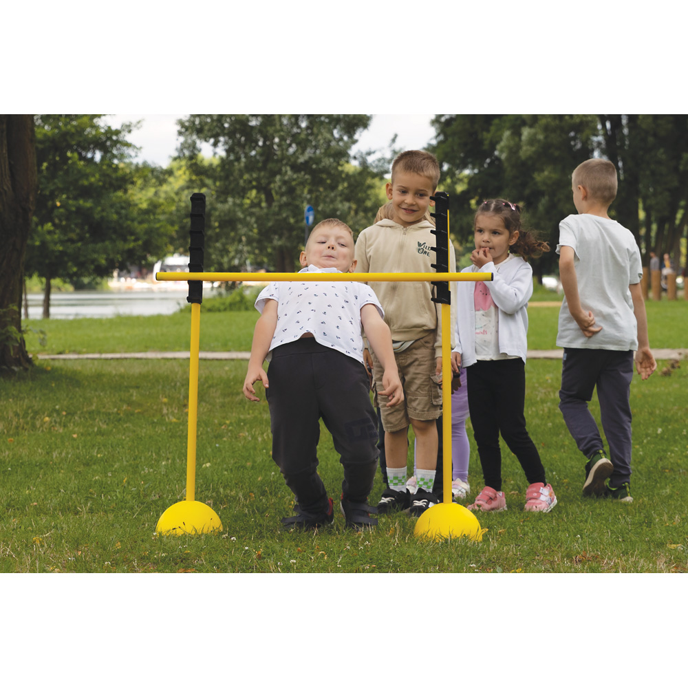 Funktionelles und robustes Trainingsgerät aus Kunststoff, ideal für Übungen zur Förderung der Beweglichkeit, Koordination und allgemeinen motorischen Fähigkeiten. Dank der Befestigungsclips lässt sich die Höhe der Querstange schnell und einfach verstellen, sodass diese an das Alter und das Leistungsniveau der Trainierenden angepasst werden kann.