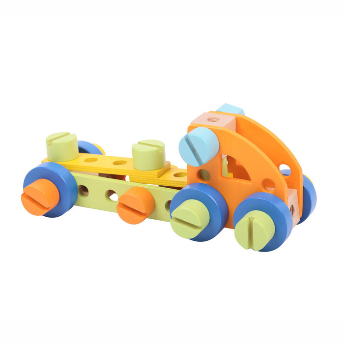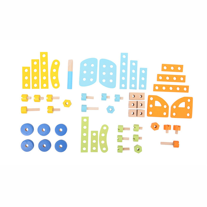 Dieser Holzbausatz besteht aus farbenfrohen Holzteilen, Schrauben, Muttern und Unterlegscheiben, mit denen Ihr Kind allerlei Fahrzeuge und Gegenstände bauen kann. Durch einfaches Zusammenschrauben der Teile lassen sich fantasievolle Spielsachen herstellen! Aus hochwertigen Werkstoffen aus verantwortungsbewusst bewirtschafteten Quellen hergestellt. Entspricht den aktuellen europäischen Sicherheitsnormen.
