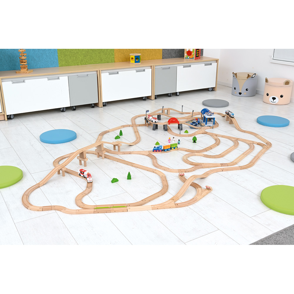 • 2-teiliger Zug (batteriebetrieben, 1 Batterie AA nicht im Set enthalten) und 3-teiliger Zug