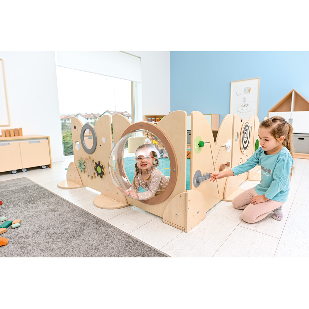 Mit diesen Holztrennwänden können schnell verschiedene Bereiche abgetrennt werden: Spiel- oder Erholungsbereich, Krabbelecke. Motorikelemente beschäftigen die Kleinen zusätzlich. Die stabilen Ständer sorgen für einen sicheren Stand. Die Module passen farblich und thematisch zu unseren Spielecken Alpenblick (096950) und Flora (099386). Alle Schmuck- und Spielelemente beidseitig. Ständer (099398, 099399) und Wandbefestigungselemente (099397) separat zu bestellen.