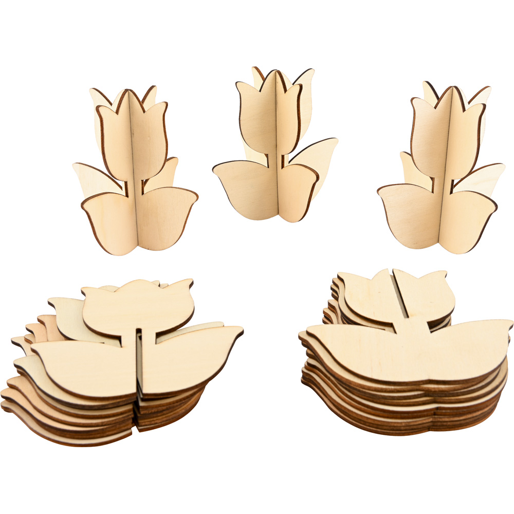 Kleine Geschenkidee zu Ostern, zum Muttertag oder für Geburtstage. Jede Tulpe besteht aus 2 Teilen, die zu einer 3D-Tulpe zusammengesteckt werden. Sie sind unbemalt und können mit Farben, Markern, Buntstiften, Glitter und mehr dekoriert werden.
