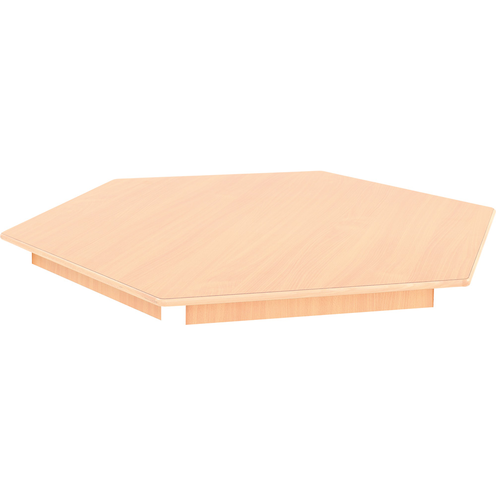 Tischplatte aus HPL-beschichteter Spanplatte (18 mm) in Buche-Optik. Dieses Oberflächenmaterial ist extrem belastbar und wird bevorzugt für hoch beanspruchte Flächen im Möbelbau eingesetzt. Solche Tischplatte verträgt auch mal einen Stoss! Kanten aus Massivbuchenholz. Die Beschichtung ist über die Holzkante geleimt. So gibt es keine Fugen und Ritzen. Ein Ablösen der Kante ist ausgeschlossen. Abgerundete Ecken und Kanten sorgen für die Sicherheit der Kinder und verschönern gleichzeitig das Aussehen.