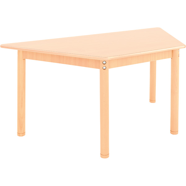 Tischplatte aus HPL-beschichteter Spanplatte (18 mm) in Buche-Optik. Dieses Oberflächenmaterial ist extrem belastbar und wird bevorzugt für hoch beanspruchte Flächen im Möbelbau eingesetzt. Solche Tischplatte verträgt auch mal einen Stoss! Kanten aus Massivbuchenholz. Die Beschichtung ist über die Holzkante geleimt. So gibt es keine Fugen und Ritzen. Ein Ablösen der Kante ist ausgeschlossen. Abgerundete Ecken und Kanten sorgen für die Sicherheit der Kinder und verschönern gleichzeitig das Aussehen.