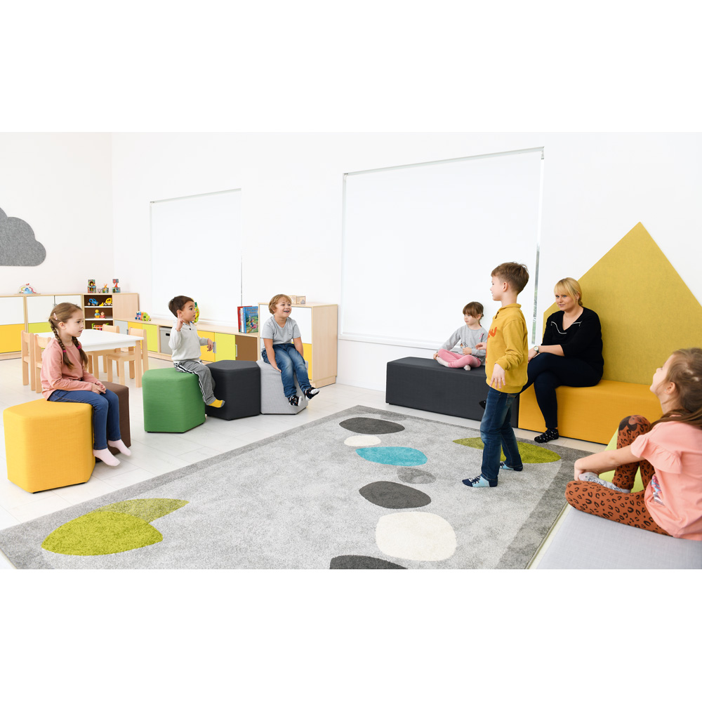 Bequeme Sitzhocker in moderner Form und Farbe. Die Hocker sind mit schwarzen Kunststoffgleitern und hochwertigem, sehr strapazierfähigem Stoff bezogen. Das Material aus 100% Polyester ist fleck- und feuchtigkeitsabweisend; verschüttete Flüssigkeiten dringen gar nicht erst ins Gewebe ein und lassen sich ganz einfach abwischen bzw. aufsaugen, ohne dass Fleckenränder zurückbleiben. Inflamea ist zudem schwerentflammbar und entspricht Brandschutzklasse B1.