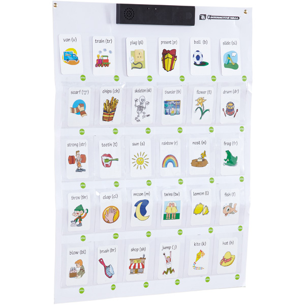 Aus Kunststoff; mit Einstecktaschen. In die Einstecktaschen passen Fotos, Bilder oder kleine Gegenstände, zu denen man einen kurzen Text (jeweils 10 Sekunden) aufsprechen kann.