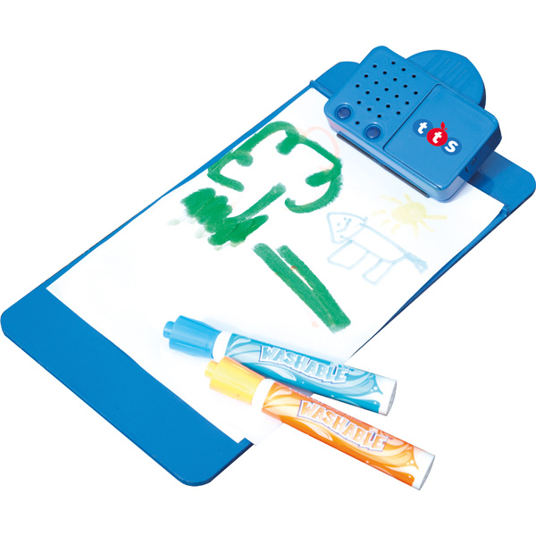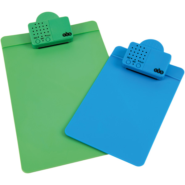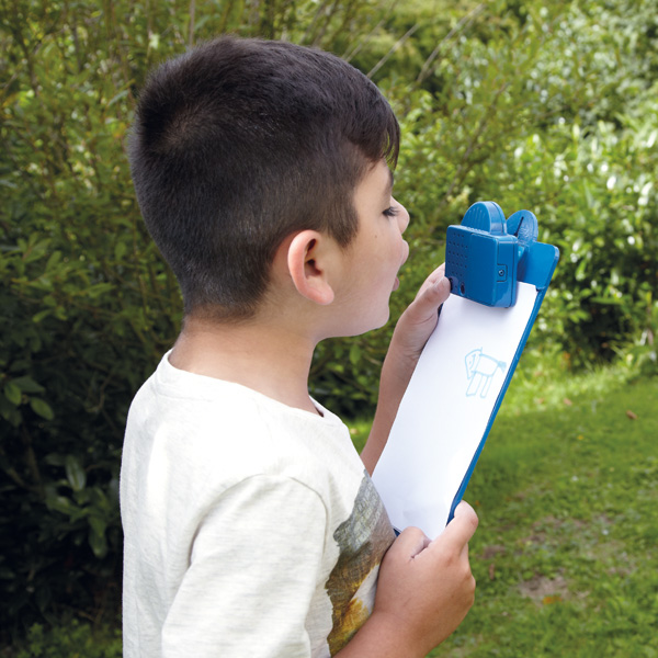 An dieser Kunststoffunterlage lassen sich nicht nur Notizzettel festklemmen, sie spricht auch mit dir. Sequenzen bis zu 40 Sekunden können aufgenommen werden. So können die Kinder bei einer Rallye oder einem Geländeausflug die gestellten Aufgaben wiederholt abhören, während sie ihre Lösung auf dem Schreibblock notieren. Sie können aber auch eigene Beobachtungen aufsprechen.
