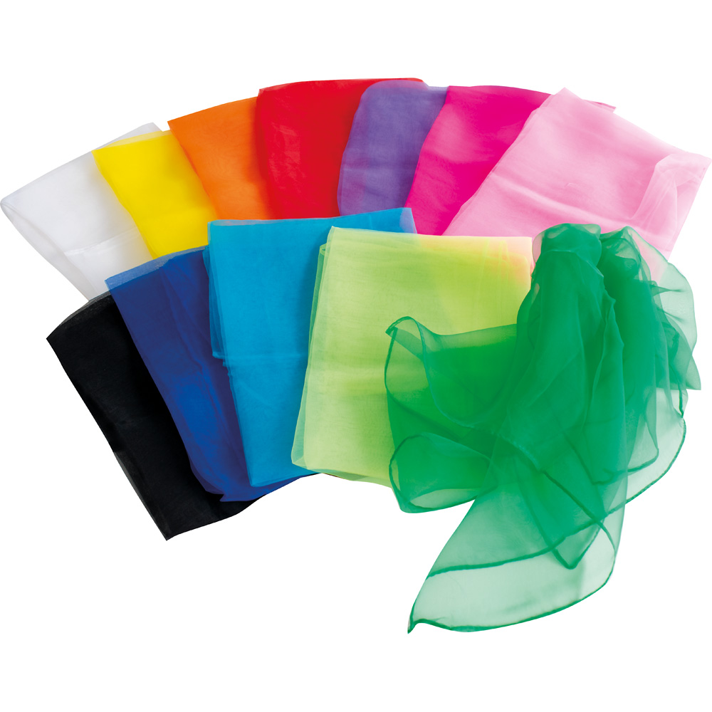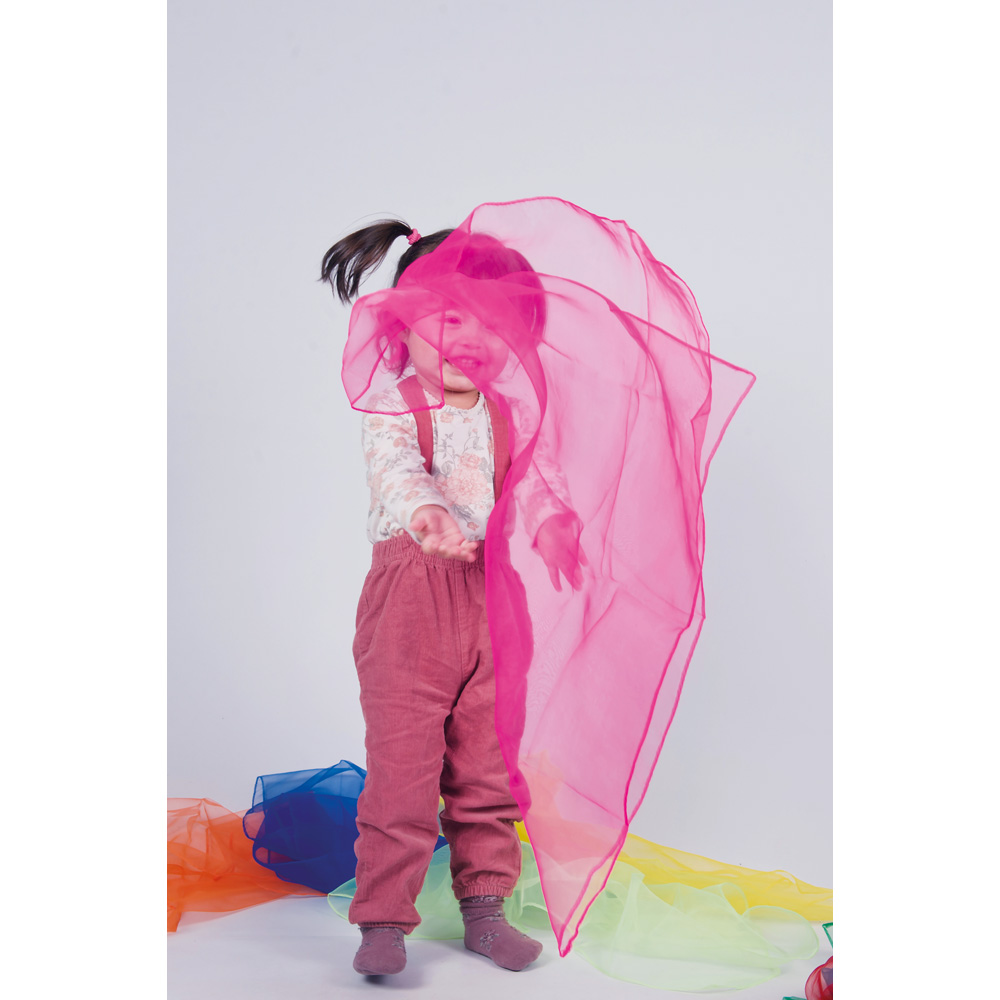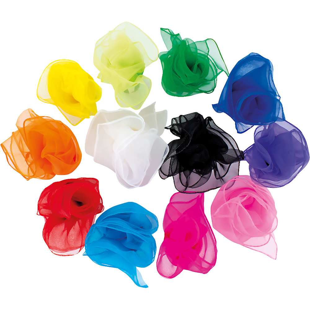 Das Set aus Organzaschals in verschiedenen Farben fördert die manuellen Fähigkeiten, die motorische Koordination und die Kreativität. Hergestellt aus leichtem und strapazierfähigem Polyester. Dank ihrer feinen Textur schweben sie sanft in der Luft und können für verschiedene Bewegungsspiele verwendet werden.