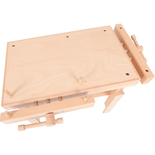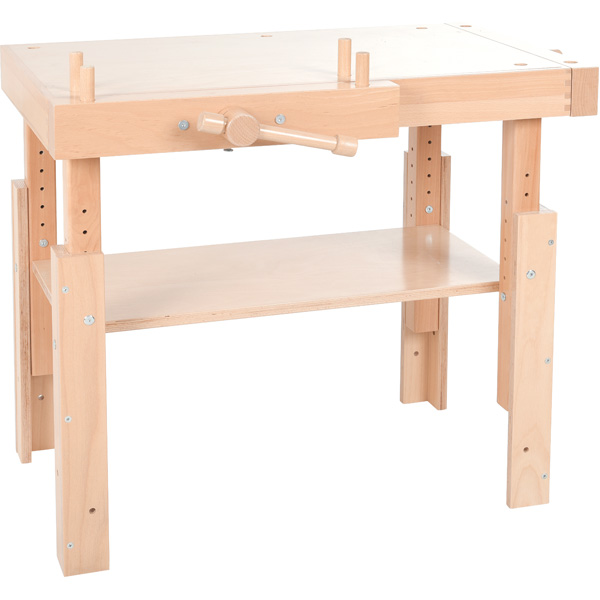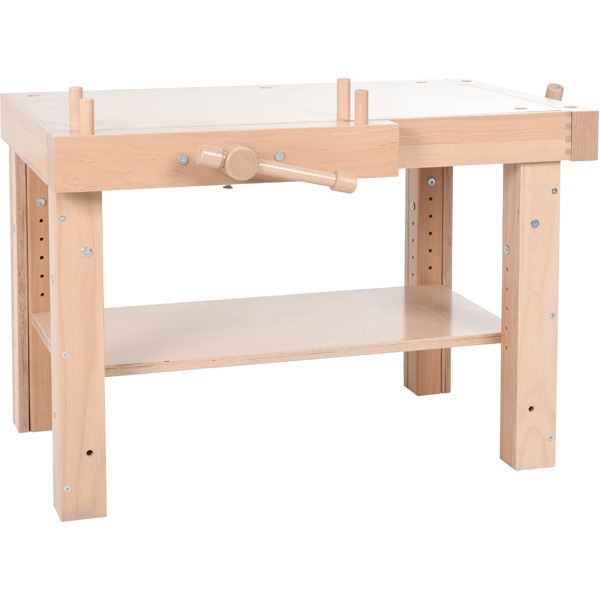 Die Werkbank, die mitwächst - für Kinder und Jugendliche. Höhenverstellbare Werkbank - mögliche Arbeitshöhen: 58 bis 74 cm. An der Arbeitsplatte befinden sich 2 Spannzangen.
