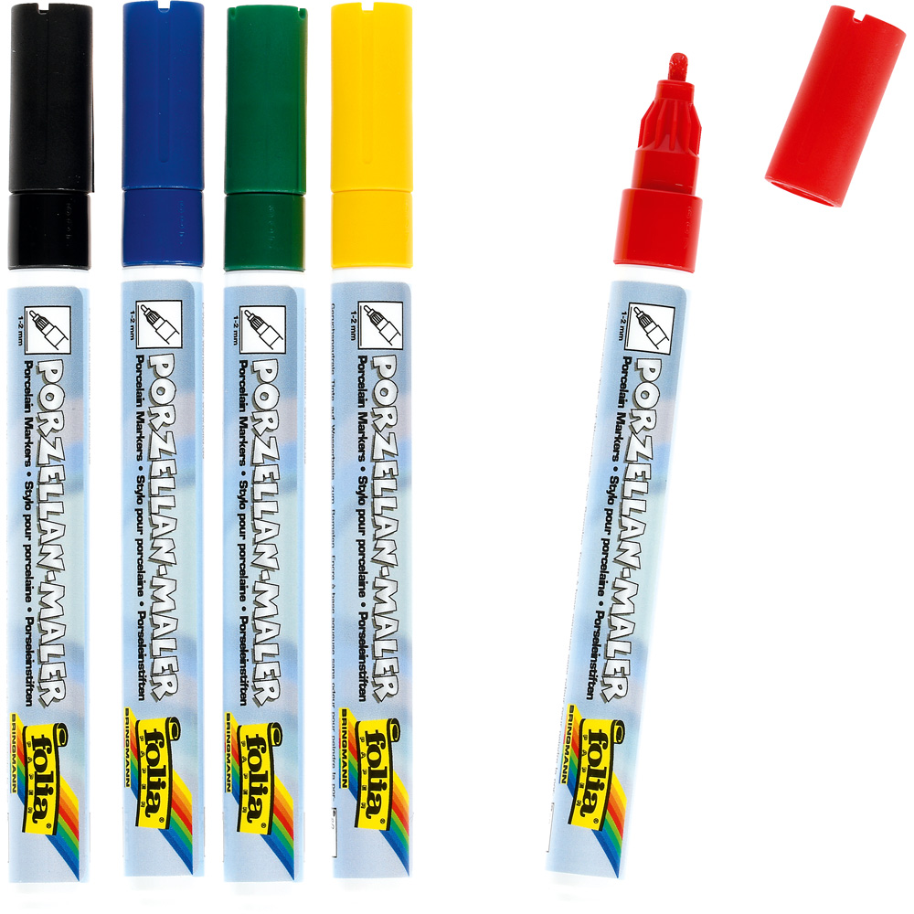 Keramik-Marker sind für Glas, Porzellan und Keramik geeignet. Ihre spülmaschinenfeste, geruchsneutrale Tinte ist ideal zum Bemalen von Tassen, Tellern usw. Fehler während des Auftragens der Farbe lassen sich mit einem feuchten Tuch beseitigen, nach dem Fixieren (im Ofen, 90 min. bei 160°) ist dies nicht mehr möglich.